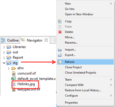 You might need to refresh the stg folder in the project Navigator to see the file you have copied.