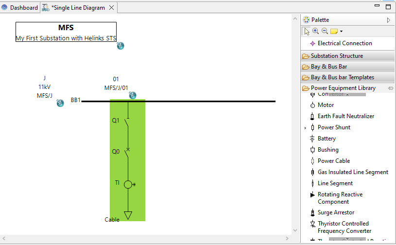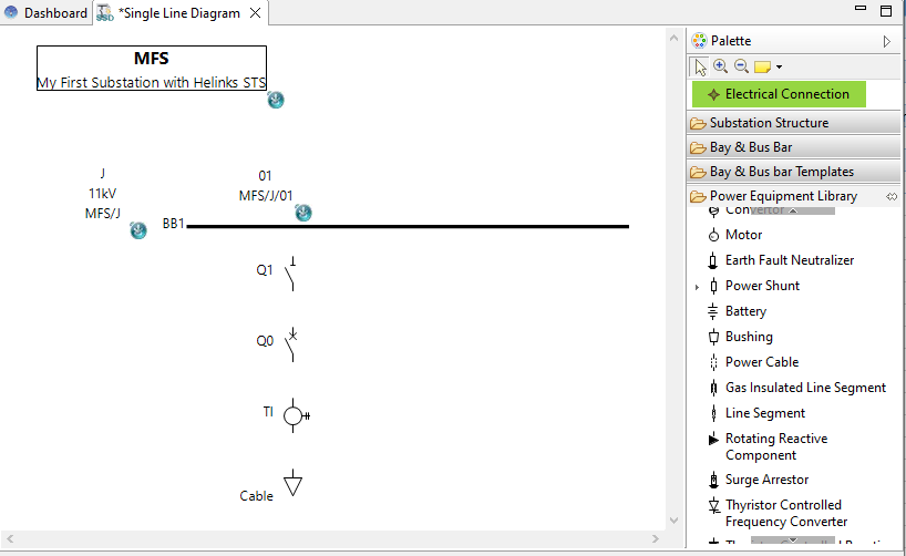 Use the “Electrical Connection” tool from the palette to connect the power equipment with each other and with the Bus Bar.