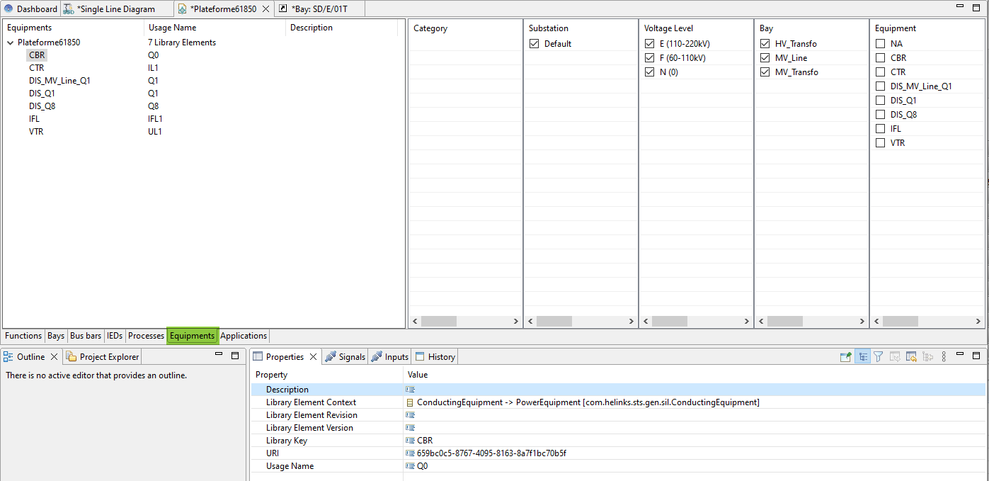 An equipment draw in the single line is composed of multiple Equipment Functions. Equipment function are either :