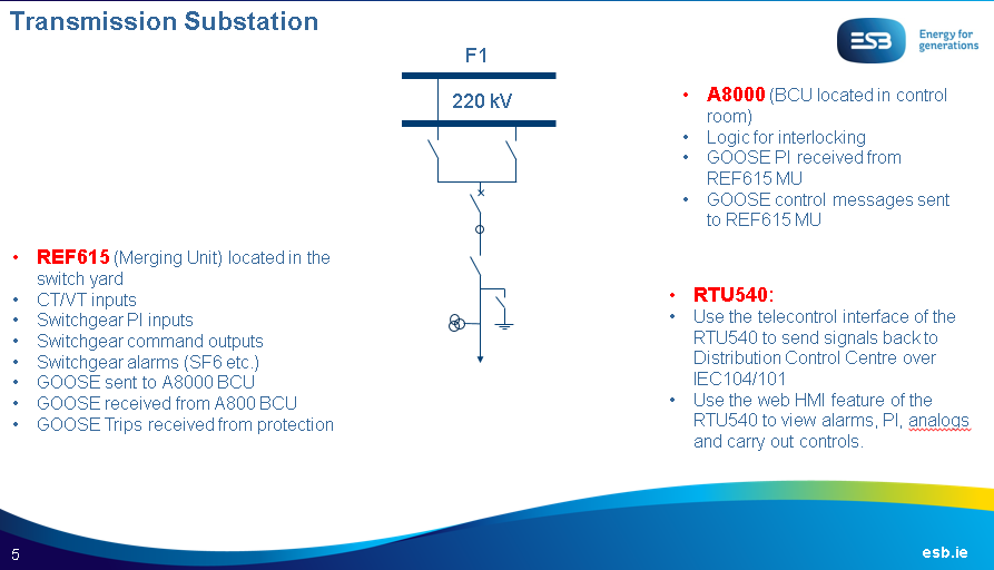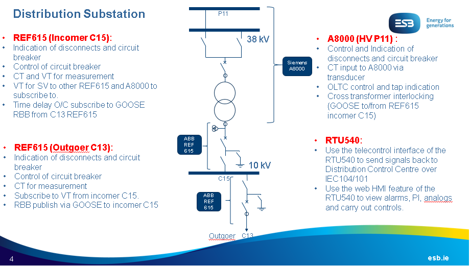 The following images show the function specification for bays at the distribution substation according to the information from ESB.