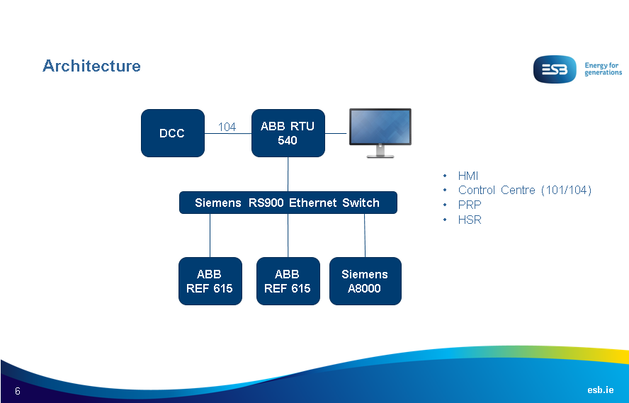 There is no information from ESB to show the network diagram for the transmission substation. However, from the Distribution information, it is implied that the network diagram for transmission could also be similar. The IP address of the IEDs are according to the following table.