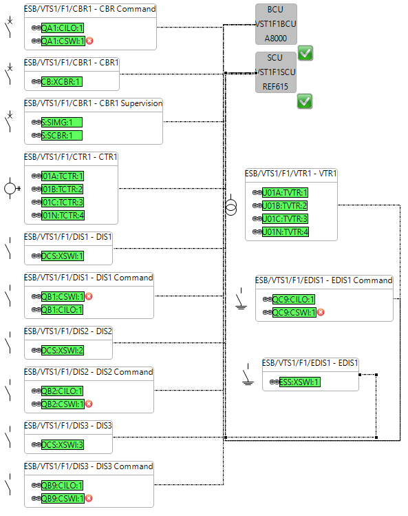 ESB Transmission | 220 kV (VTS1) | F1 (Transmission Feeder) | BCU (Bay Control Unit) | Siemens A8000 | VST1F1BCU |