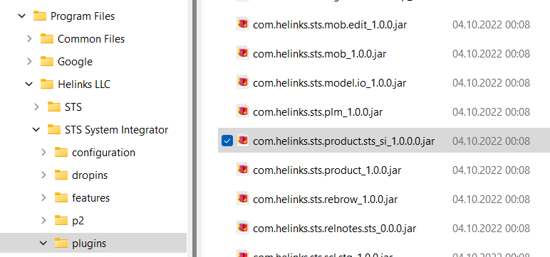Locate the plugin com.helinks.sts.products_sts_si_1.0.0.0.jar in your installation directory.