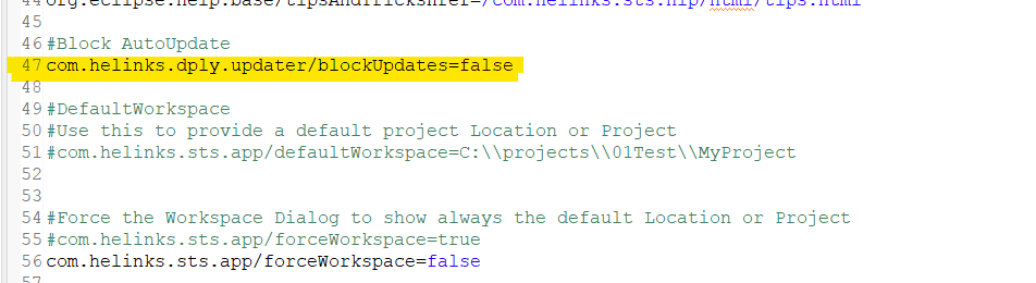 If the installation is centrally managed, it may be necessary to prevent individual updates. By setting the “blockUpdate” parameter in the plugin-customization.ini file, updates are blocked, and all menu items providing update options are suppressed from the Help menu.