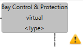 Currently the state of the virtual IED "Bay Control & protection" is virtual (in the specification phase) and this is snow by the yellow triangle icon.
