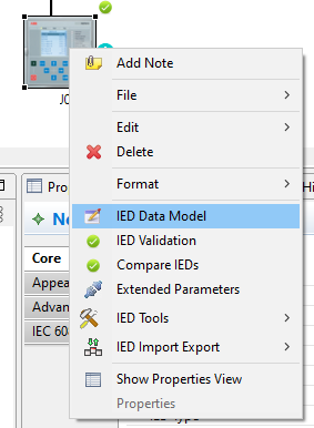 Select an IED in the System Diagram right click and use the option "IED Data Model"