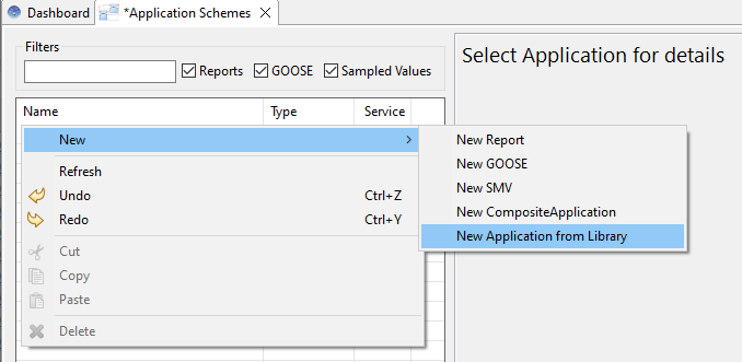 When the application is added to the library you can instanciate it with the ‘New Application from Library’ context menu entry in the Application view:
