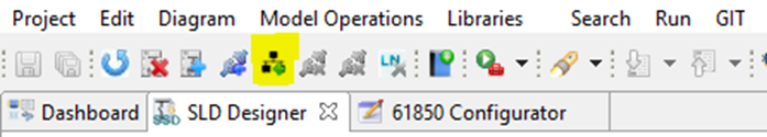 The compilation of the IEC61850 communication is done by the tools bar button “Set SCL communication from specification”.