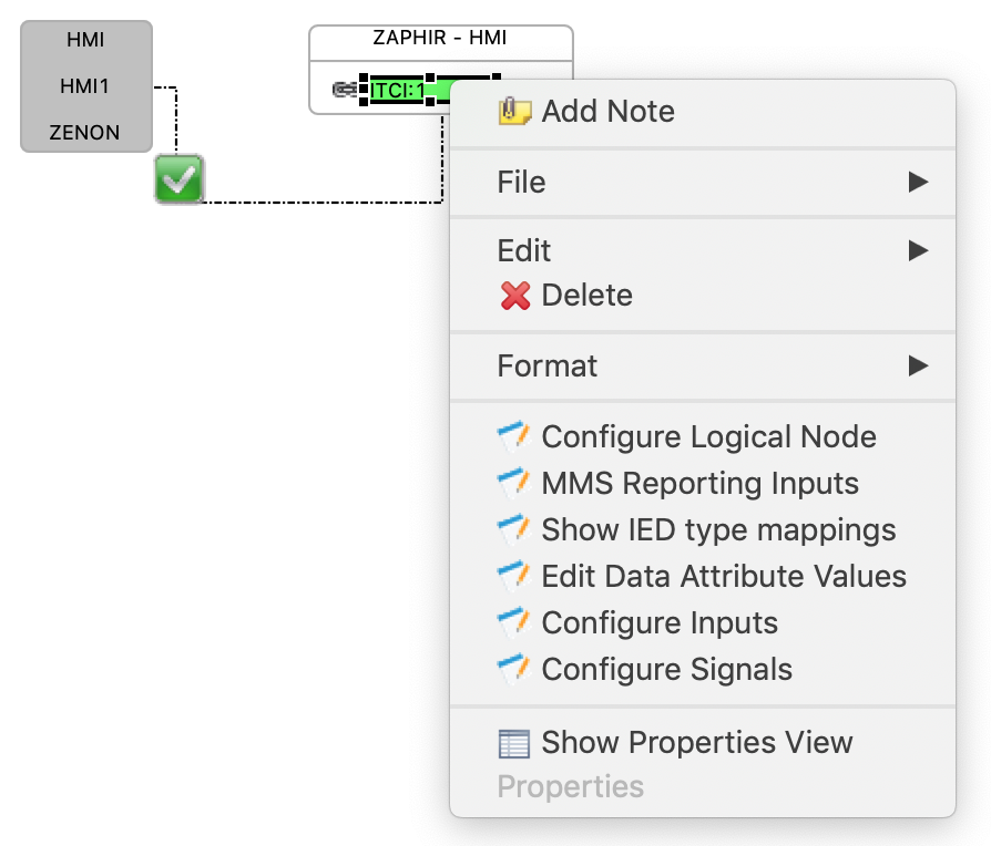 Report applications can be configured in the same way as GOOSE and SMV, but the simpler configuration demands allow a shortcut that greatly speeds up Report configuration, and is the recommended way of doing. Navigate to the subscribing logical node, and select the ‘MMS Reporting Inputs’ entry in the right-click context menu.