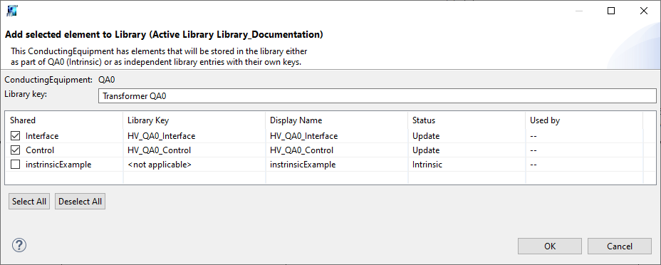 In this case, the library element should contain the superset of all functions that are used by variants. For this reason, ‘Update from Library’ will only update existing equipment functions to preserve the variant. Should a new equipment function be added to an existing equipment library element, it will need to be created manually for all equipment instances that require it.
