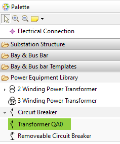 After an equipment has been added to the library, its ‘Template’ property will show the library key, and the equipment becomes available in the area of the editing palette on a dropdown list of the Equipment type :