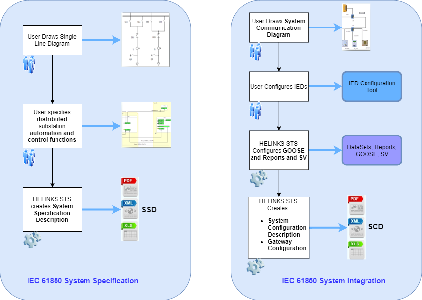 It is used to do the System Specification for one or more Substations. Thus, it shows the single line diagram and function specification and virtual IEDs assigned to functions, and communication specification.