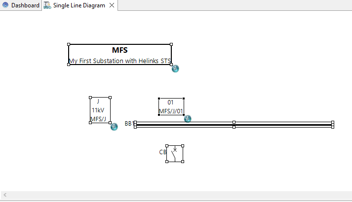 Click on the canvas and drag open an embracing rectangle to select all objects contained. Operations like move, delete copy and paste are now performed on all objects belonging to the Substation MFS.