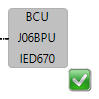 An existing, real IED can be assigned to one or more virtual IEDs by using the ‘Implement’ action of the right-click menu of the respective virtual IED. When assigned, the virtual IED will display the name of its associated IED in the center text, and the type ( according to the IEDs iedType attribute) in the bottom text.