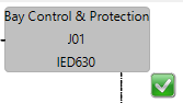 The virtual information is replaced by the IED name. The IED type is shown in the second line of the IED box. The yellow triangle is replaced by a green check mark.