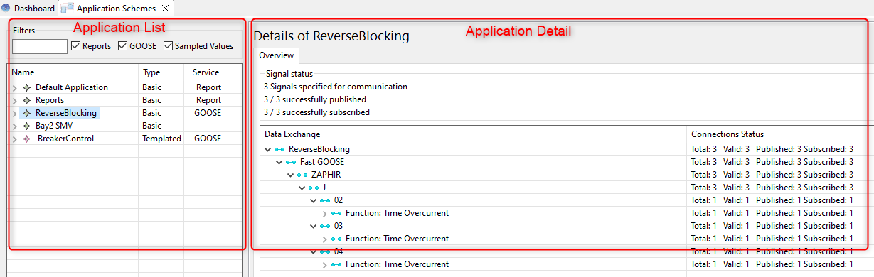 In addition to the specification, there is implementation data available: The three elements ‘Dataset’, ‘Control block’ and ‘ExtRef’ show us that the specified signal connection is fully implemented by both publishing and receiving IED.