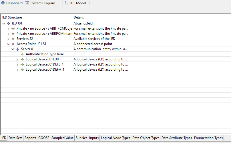 Select an IED in the System Diagram right click and use the option "IED Data Model"