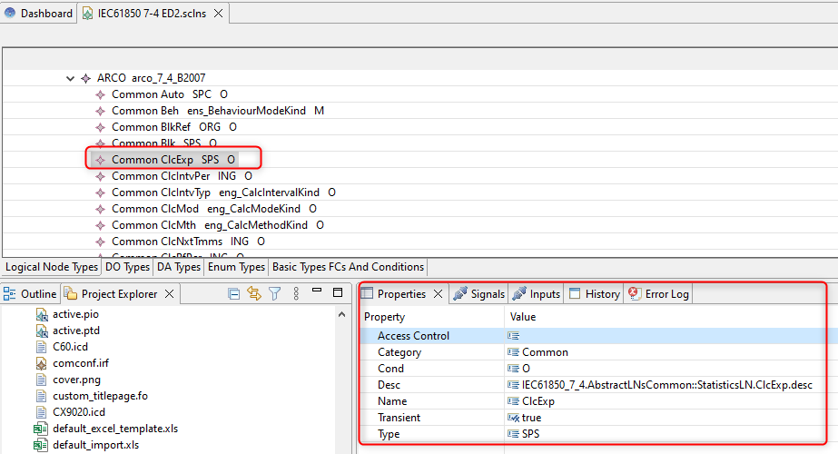 The Namespace Editor show Datatype grouped into tab (LN, DO, DA, Enum, basic FC and Condition).